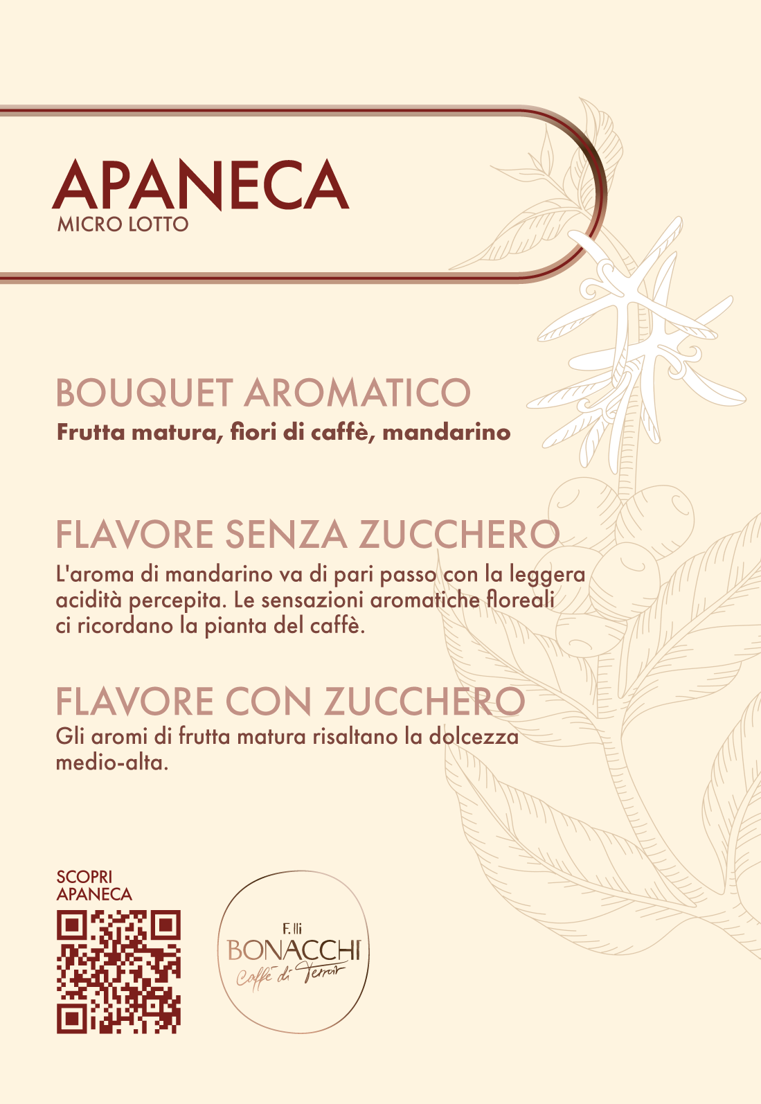 100% Arabica, varietà Bourbon, specialty coffee singola origine, punteggio 86+.