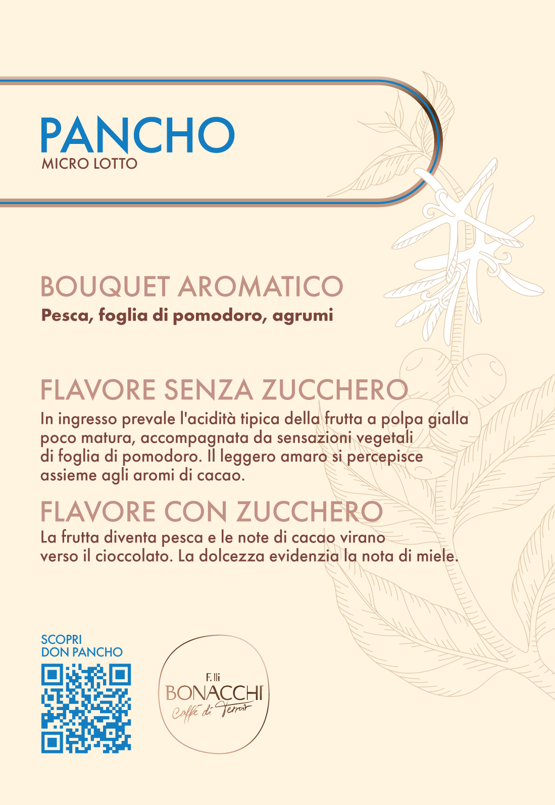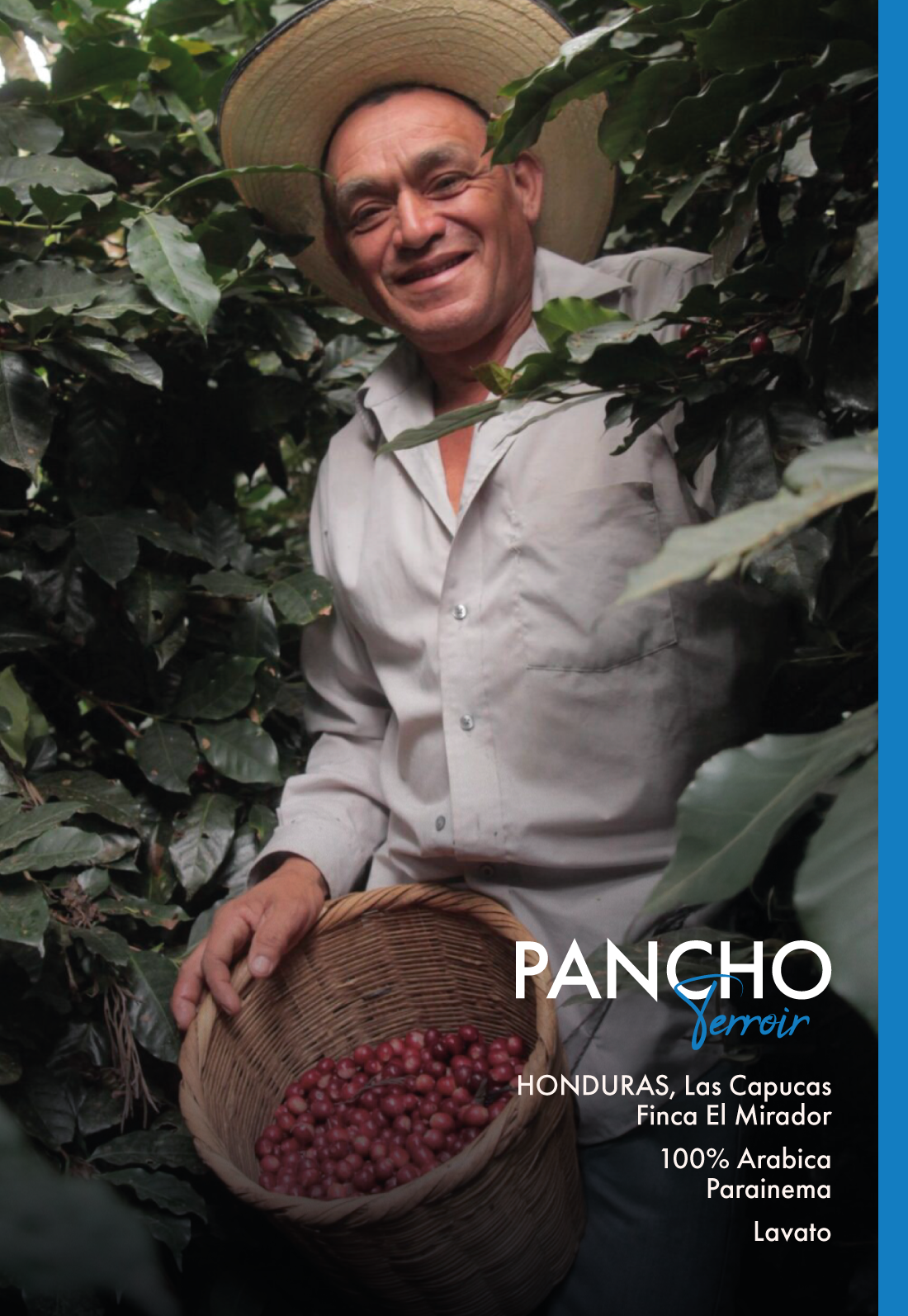 Finca Pancho è un piccolo appezzamento di terra, conosciuto anche come El Mirador per la sua posizione strategica, vicino al villaggio di Pachapa nella valle di Las Capucas, Honduras. La piccola piantagione di caffè si trova all'ombra di platani e banani. Il micro lotto è gestito e controllato direttamente dal capataz Francisco Villeda Panchito da cui prende il nome.
